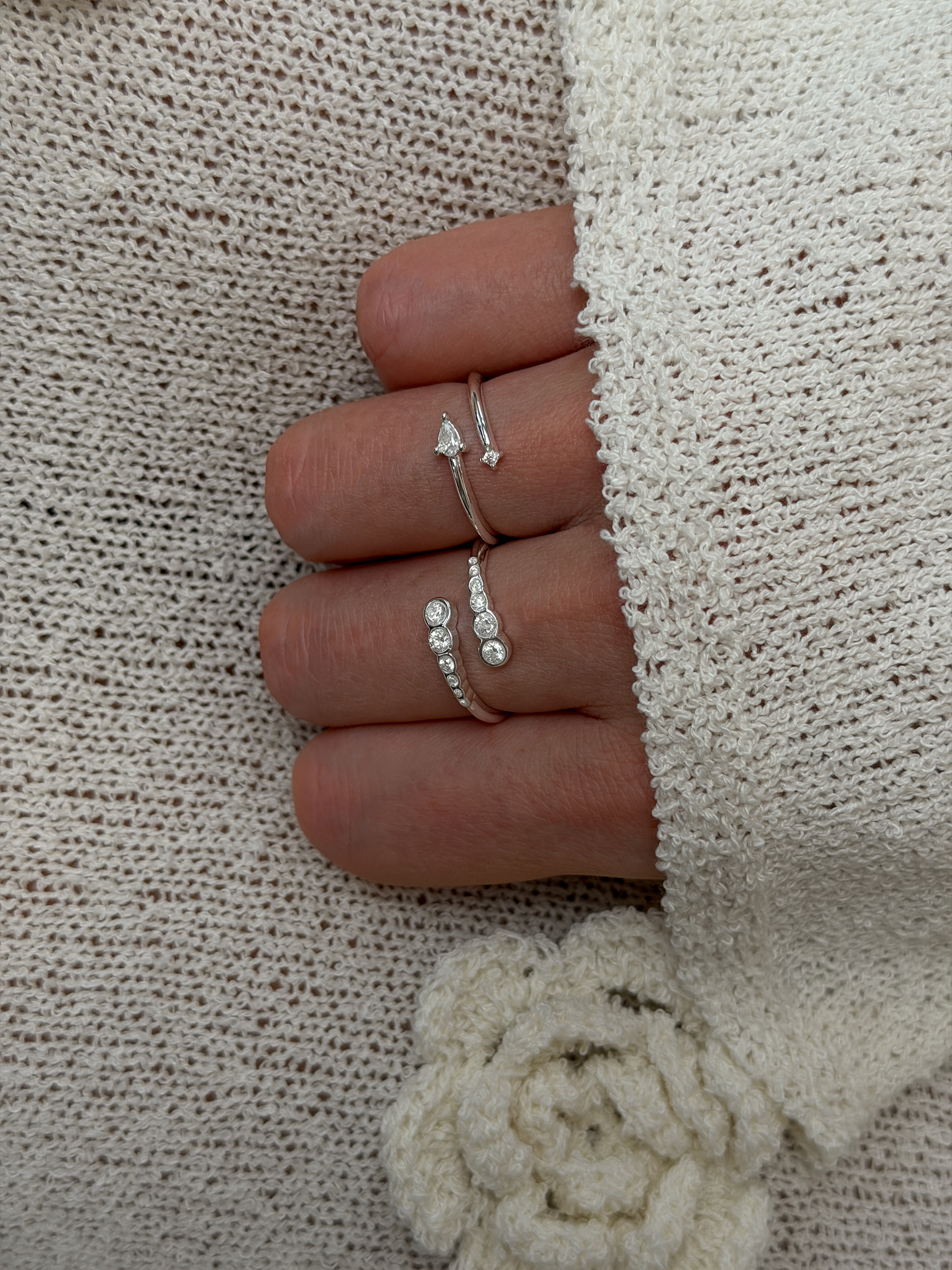 The Adjustable Luminous Ring Silver is designed with a clean but unique shape that works well for everyday wear. It is made of 925 silver plated steel, making it suitable for daily use and easy to maintain. The open-ended design allows the ring to be adjusted for a comfortable fit on different fingers. Small zirconia stones are placed at each end and cover the top of the ring, adding a subtle detail. The stones are evenly set to create a balanced design that can be worn on its own or combined with other rings.