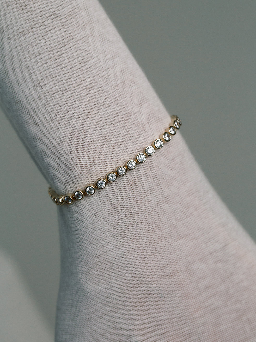 Lotus Tennis Necklace has a length of 40 cm and includes an additional extension chain of 5 cm that allows you to adjust the fit. This makes it easy to wear the necklace at different lengths depending on your style or neckline. The chain width is 4 mm, giving it a balanced shape that is noticeable but still easy to layer with other jewelry. The secure clasp holds the necklace firmly in place, and the smooth design feels comfortable around your neck. This tennis necklace is suitable for daily use or special occasions. Its simple form and full circle of zirconia stones make it a versatile piece that can be worn alone or combined with other jewelry. Combine this necklace with our Lotus Tennis Bracelet for a perfect match.
