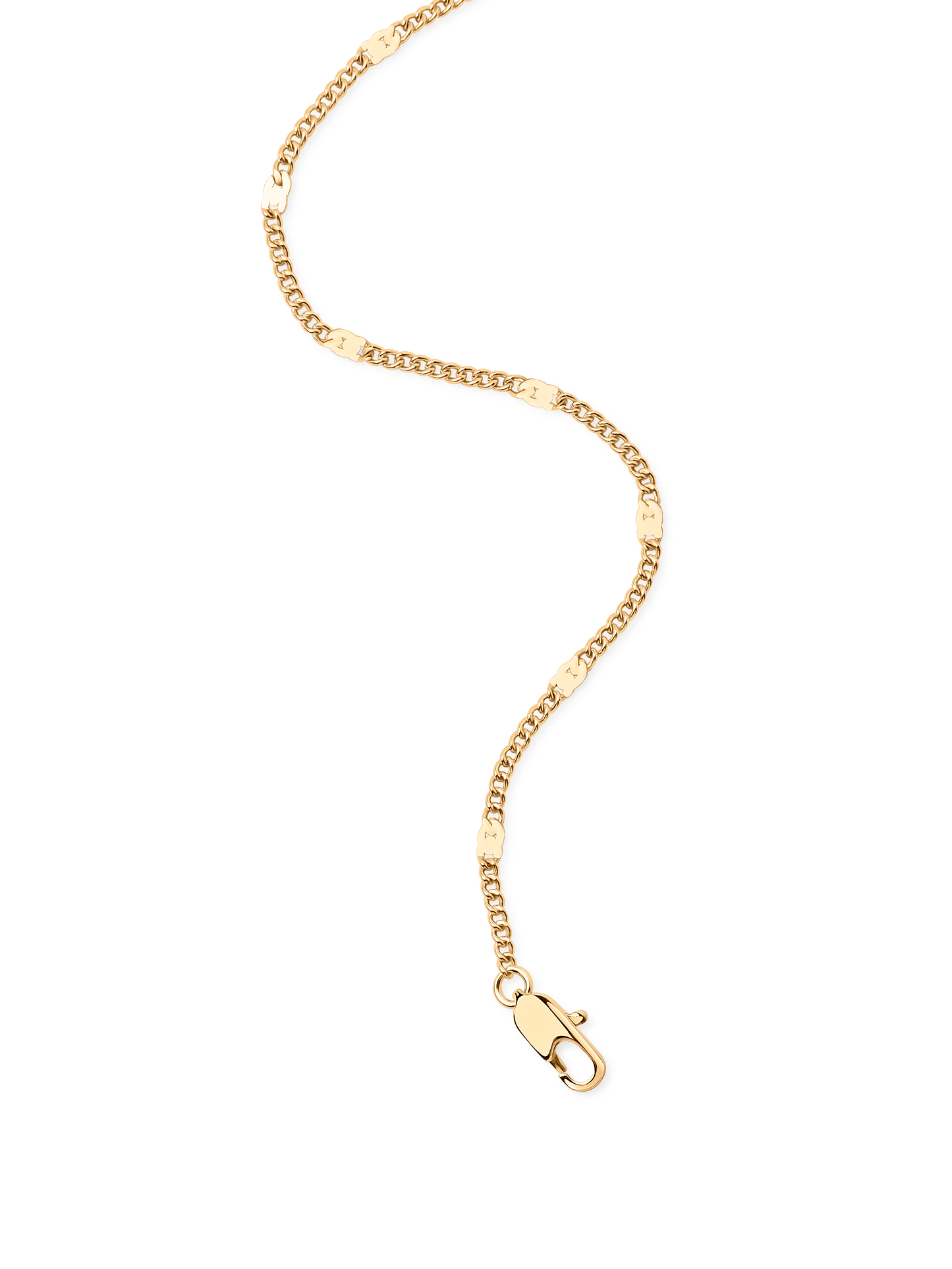 The bead detailing adds a soft contrast to the flat curb links while keeping the overall style minimal and easy to match. This bracelet pairs well with other gold jewelry or mixed-metal pieces depending on your personal style.
