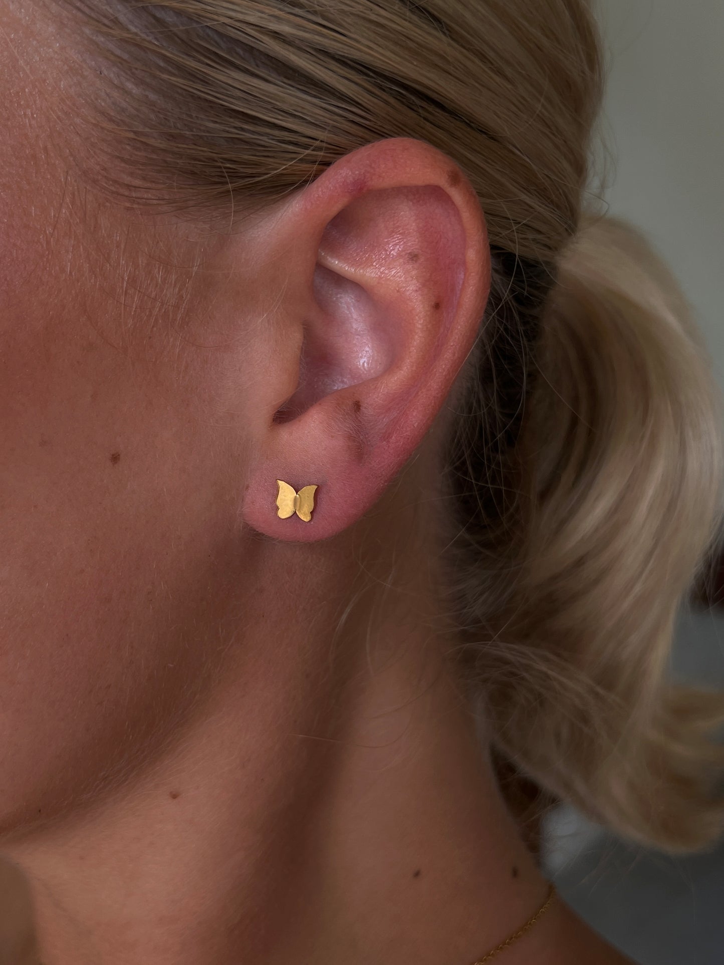 Our Butterfly Studs is made of waterproof 18k gold PVD plated steel and measures a length of 6mm and a width of 6mm. They are also available in silver.