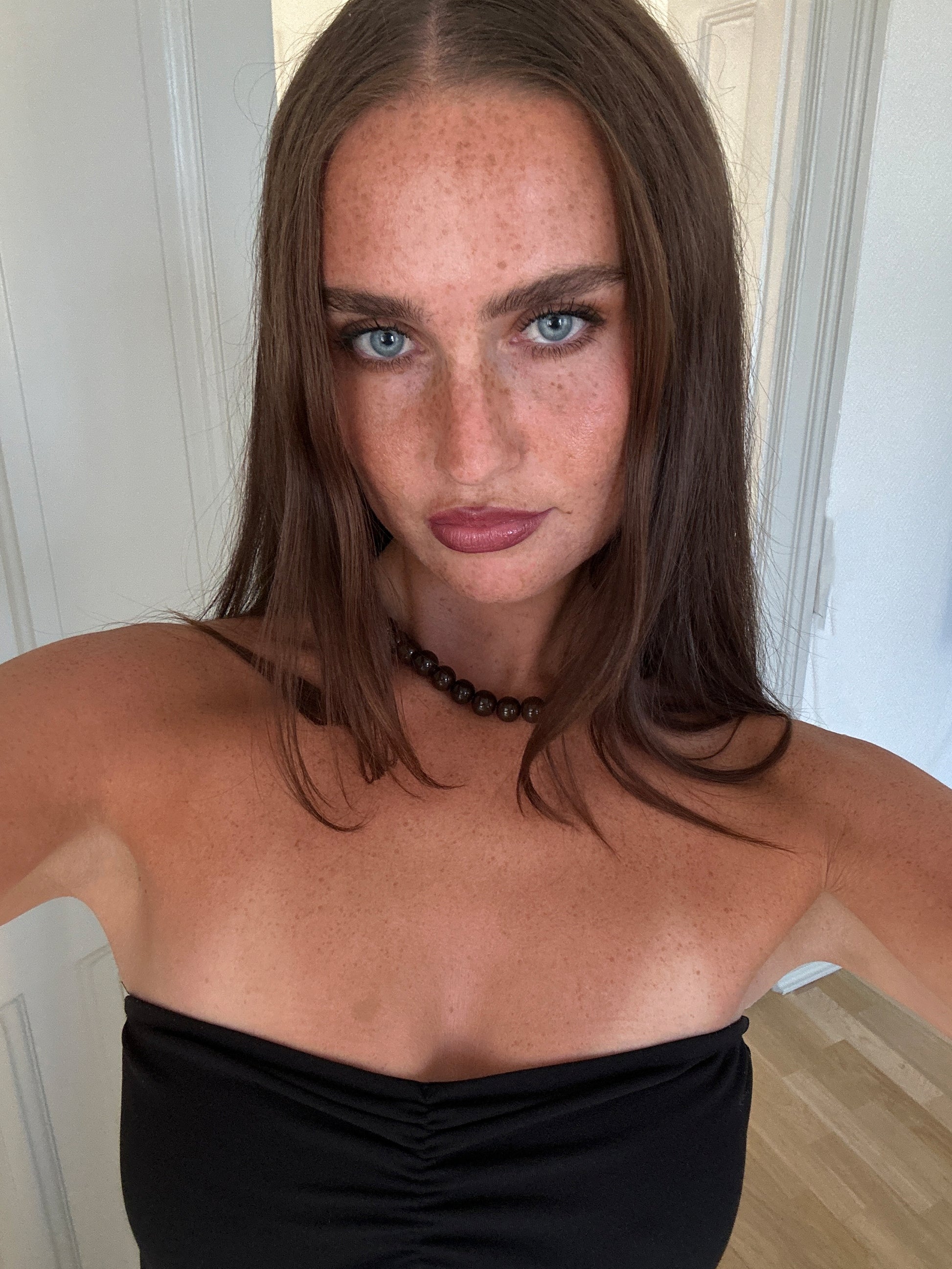 With a length of 45 cm, it sits comfortably around the neckline and can be worn on its own as a statement piece or layered with chains and other necklaces for a more personal style. The rounded beads give the necklace structure while still being light and comfortable to wear throughout the day.