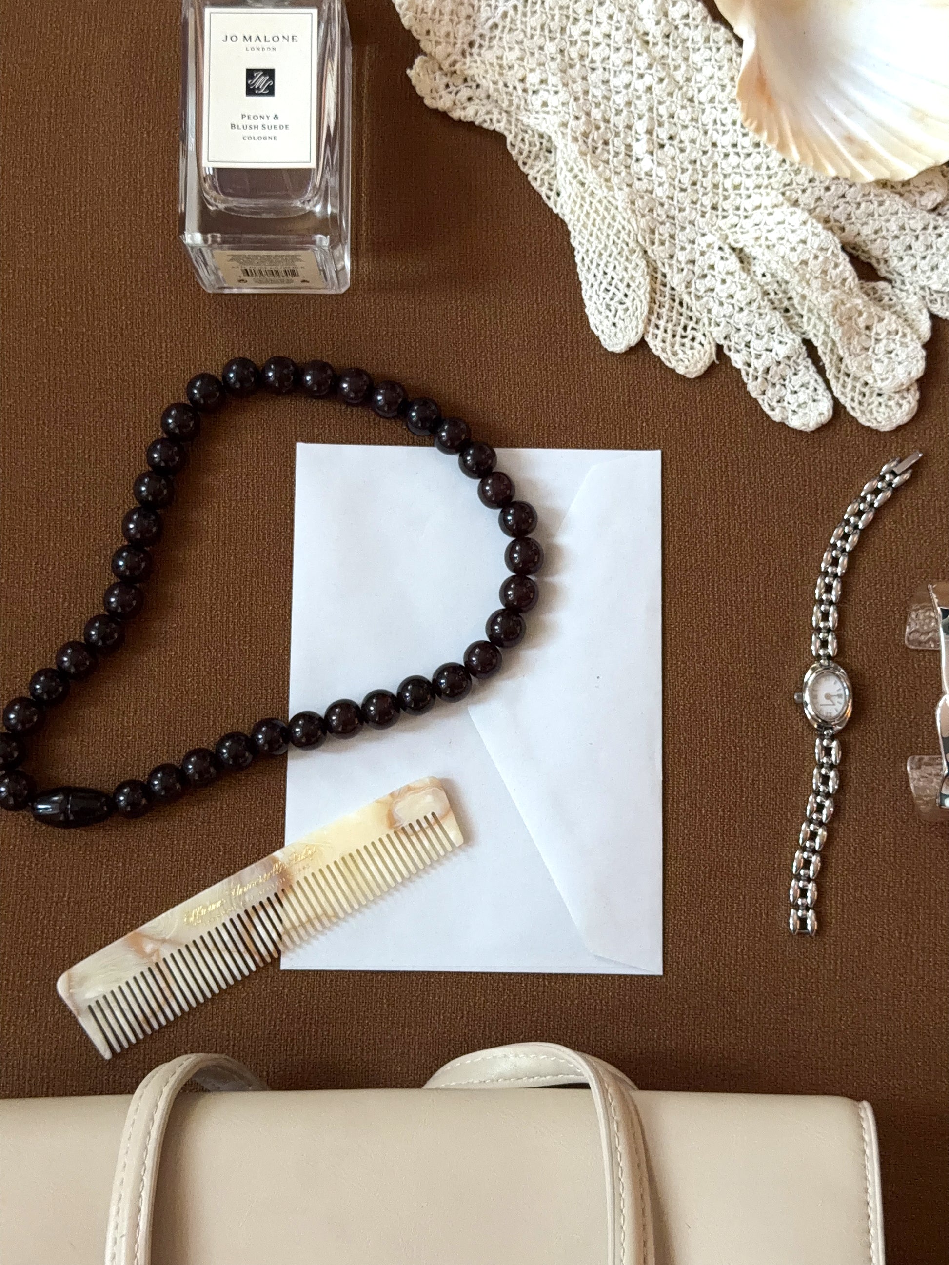 Its earthy brown color works well with both gold and silver jewelry, making it easy to mix with different metals and materials. The Cocoa Beaded Necklace is also a suitable option for transitional styling between seasons thanks to its warm tone and classic shape.