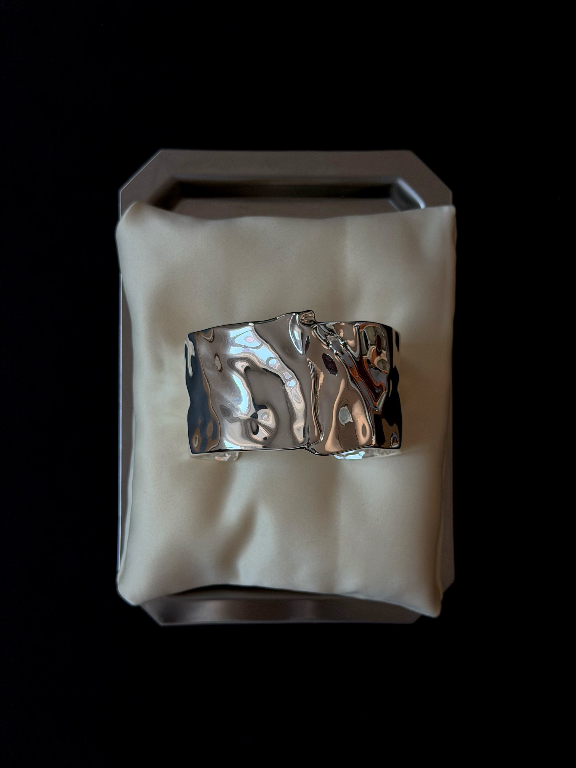 The textured design adds depth, while the smooth edges make it soft and wavy. Whether worn alone as a statement or combined with other bracelets for a layered look, the Dune Cuff Bracelet Silver fits a wide range of styles.