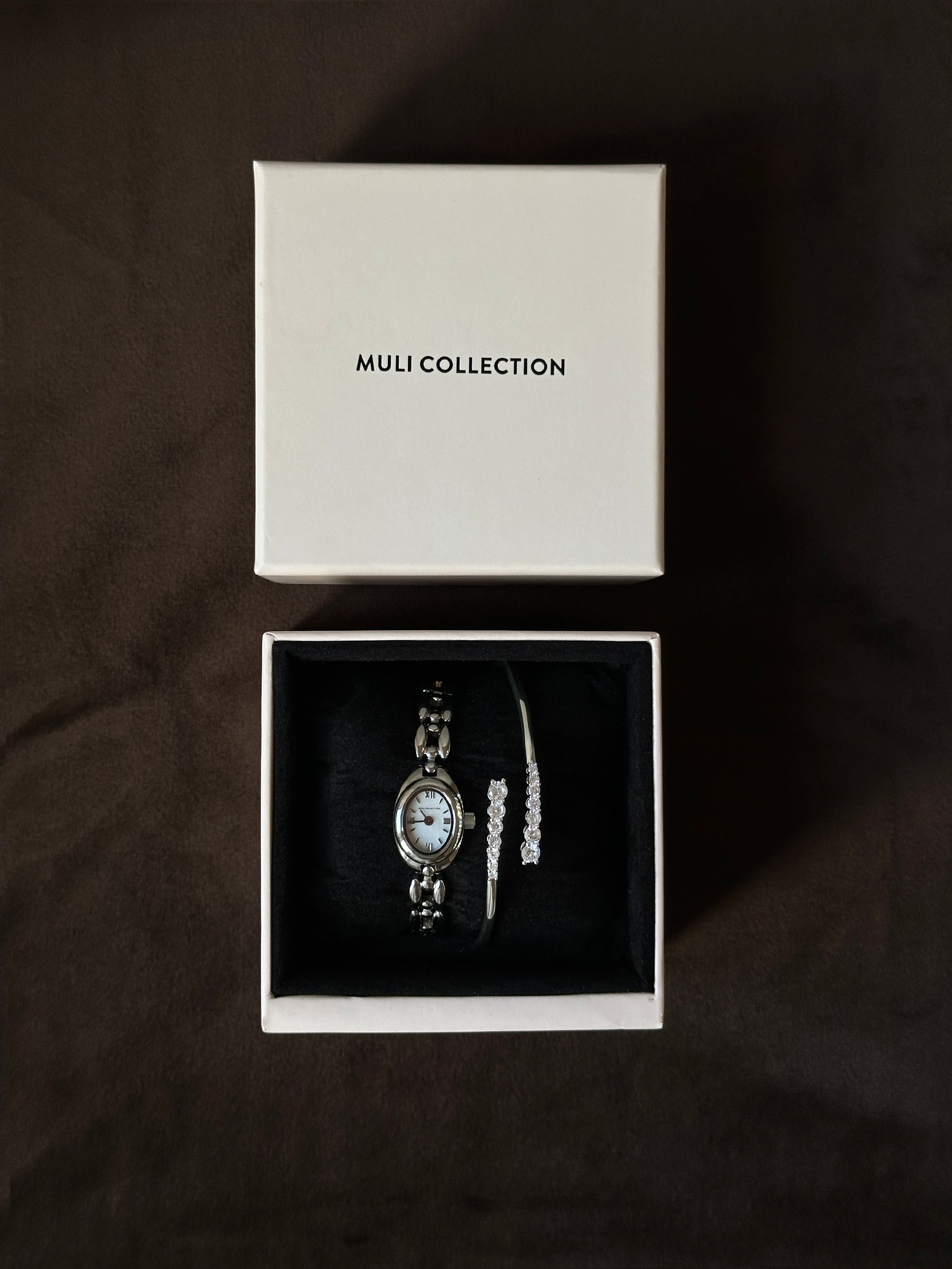 Delivered in a Muli Collection branded box, ideal for safe storage or if you plan to give the set as a gift. The Heritage Oval Watch and Bracelet Set is designed to last and to become a staple piece in your jewelry collection.