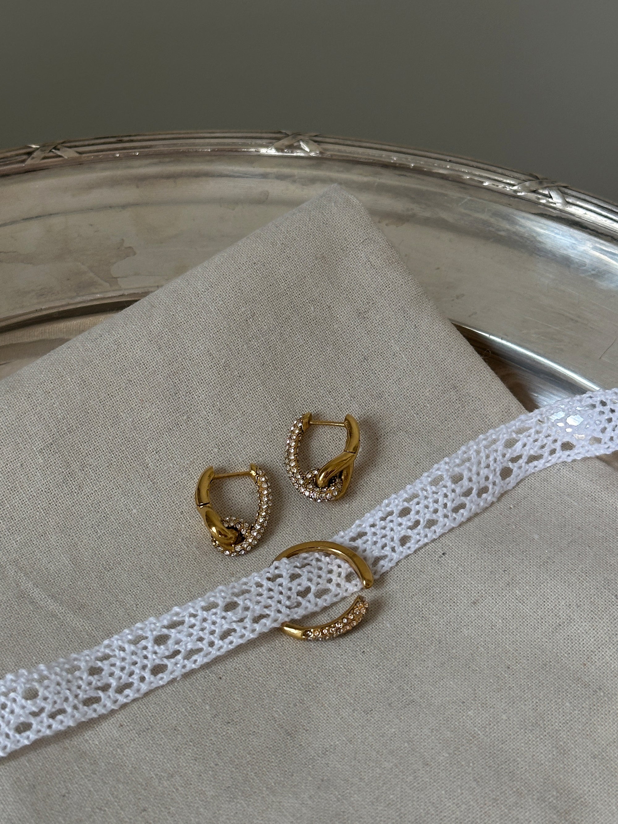Our gold- and silver-plated pieces feature a thin layer of 18k gold or 925 sterling silver over brass, offering a luxurious look at a more affordable price. Over time, the plating may wear off, revealing the brass beneath—this is a natural part of wearing plated jewelry.