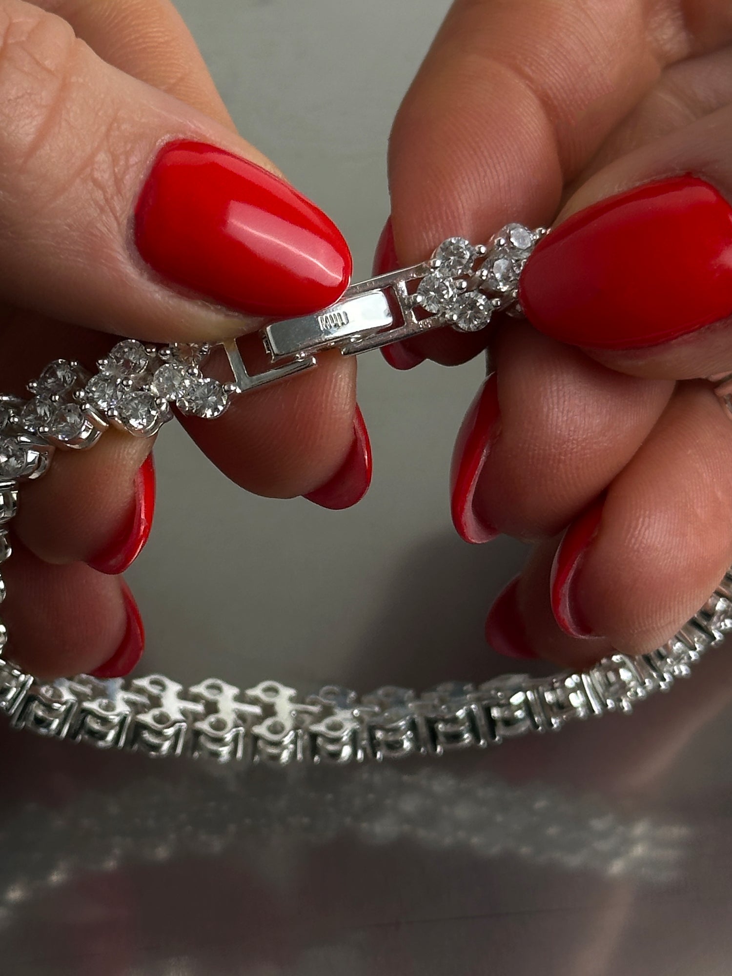 Gently guide the bar on the other side of the bracelet into the opening of the clasp.